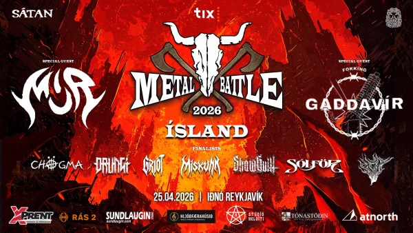 Sept groupes s’affronteront pour une place au Wacken Metal Battle, un concours international de groupes qui vise à promouvoir la scène metal et à trouver les groupes du futur. Un jury international, ainsi que les votes du public, décideront qui représentera l’Islande au plus grand festival de heavy metal au monde. Pour lancer la soirée, les piliers de la scène, Múr et Gaddavír, se produiront, puis la compétition commencera. ISH