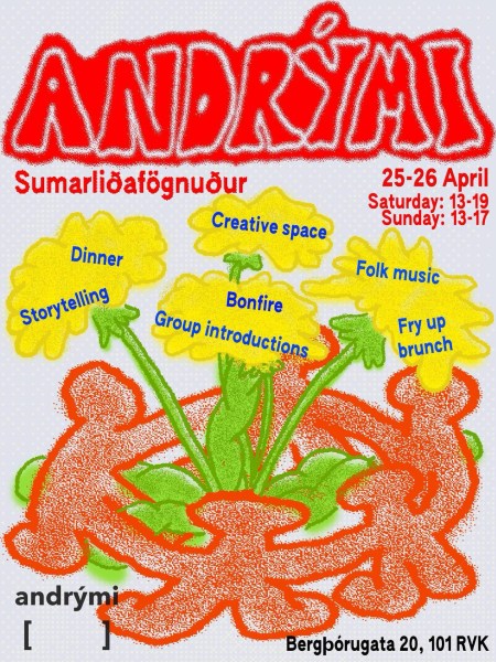 Andrymila maison aux murs jaunes située au coin de Bergþórugata et Vitastígur, est un espace apprécié de communauté et d’organisation. Ce week-end, ils organiseront un programme complet d’événements pour une double célébration : marquer l’arrivée de l’été et se souvenir du regretté Jamie McQuilkin (également connu sous le nom de Magnús Sumarliði), cofondateur d’Andrými, à l’occasion de ce qui aurait été son 37e anniversaire. Les participants peuvent s’attendre à une présentation et à un récit sur l’histoire d’Andrými, à un atelier de vélo ouvert, à une friture et bien plus encore. ISH