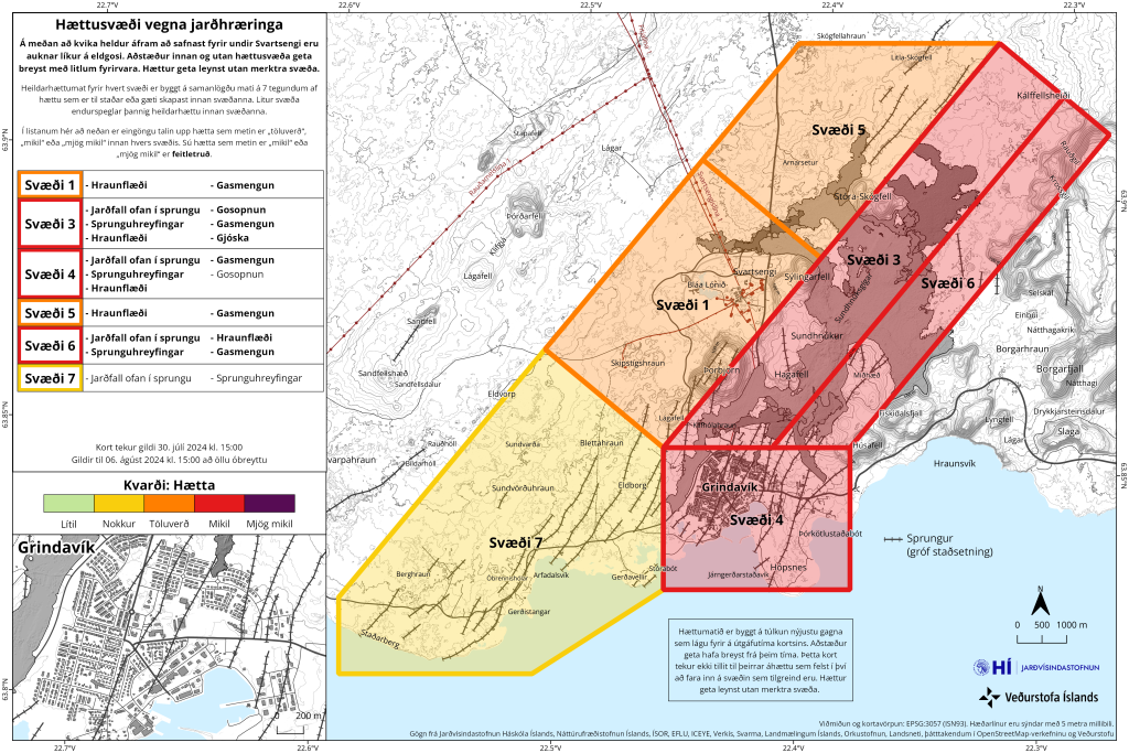 Zones à risque de la péninsule de Reykjanes. Met Office. 30 juillet.
