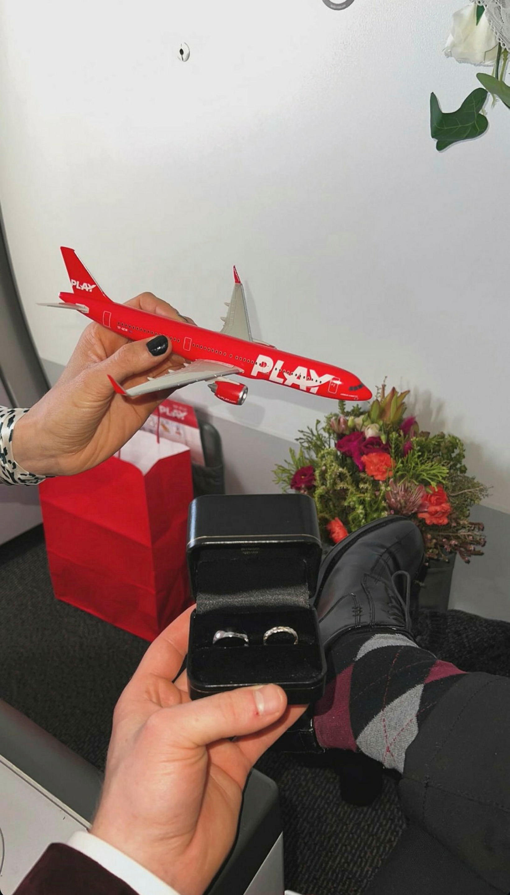 Alexander Valur Wium Brynjólfsson et sa petite amie, Kita, qui est français, a trouvé l'amour il y a deux ans. Ce matin, ils se sont mariés dans un avion de compagnie aérienne de jeu. Cependant, le couple ne pouvait pas décider de se marier en Islande ou en France, alors ils sont allés quelque part entre les deux.