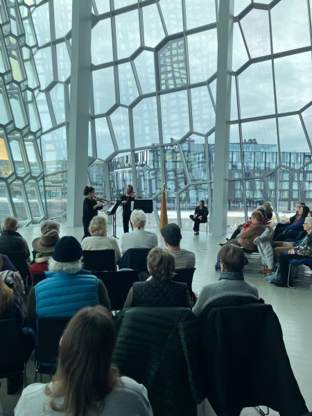 En parcourant le programme du festival, je me demande ce qui est « musique ancienne » ? Un large éventail de musiques est programmé pour la semaine, de la musique du début de la Renaissance et du baroque, à la musique romantique du XIXe siècle, en passant par les hymnes et chansons folkloriques islandais. Selon la violoniste baroque et directrice artistique Elfa Rún Kristinsdóttir, avec qui j’ai parlé avant le festival, « la musique ancienne n’est que de la musique ancienne », et elle aime ainsi garder l’organisation du festival plutôt ouverte. « Il s’agit principalement d’instruments d’époque (..) Je suppose que l’accent est mis principalement sur le baroque et ensuite, en gros, je choisis des artistes et je vois ce qu’ils veulent faire. »